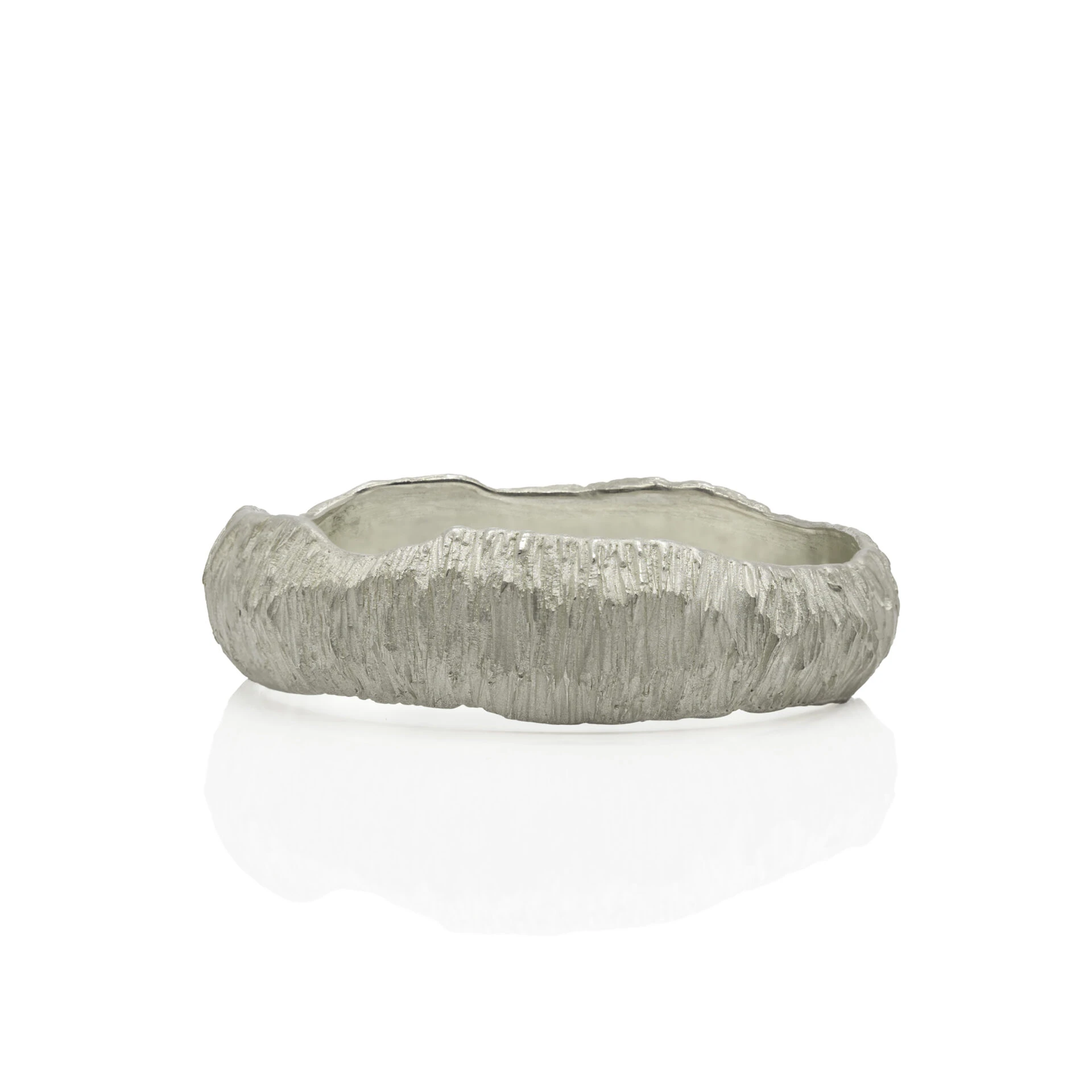Hand-sculpted bangle with surface texture made from recycled silver