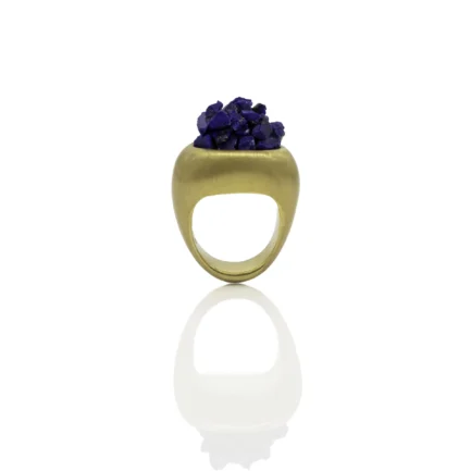 Lapilli means "little stones" in Latin. This ring, with the divine combination of lapis and gold, is inspired by rock fragments ejected by a volcanic eruption.