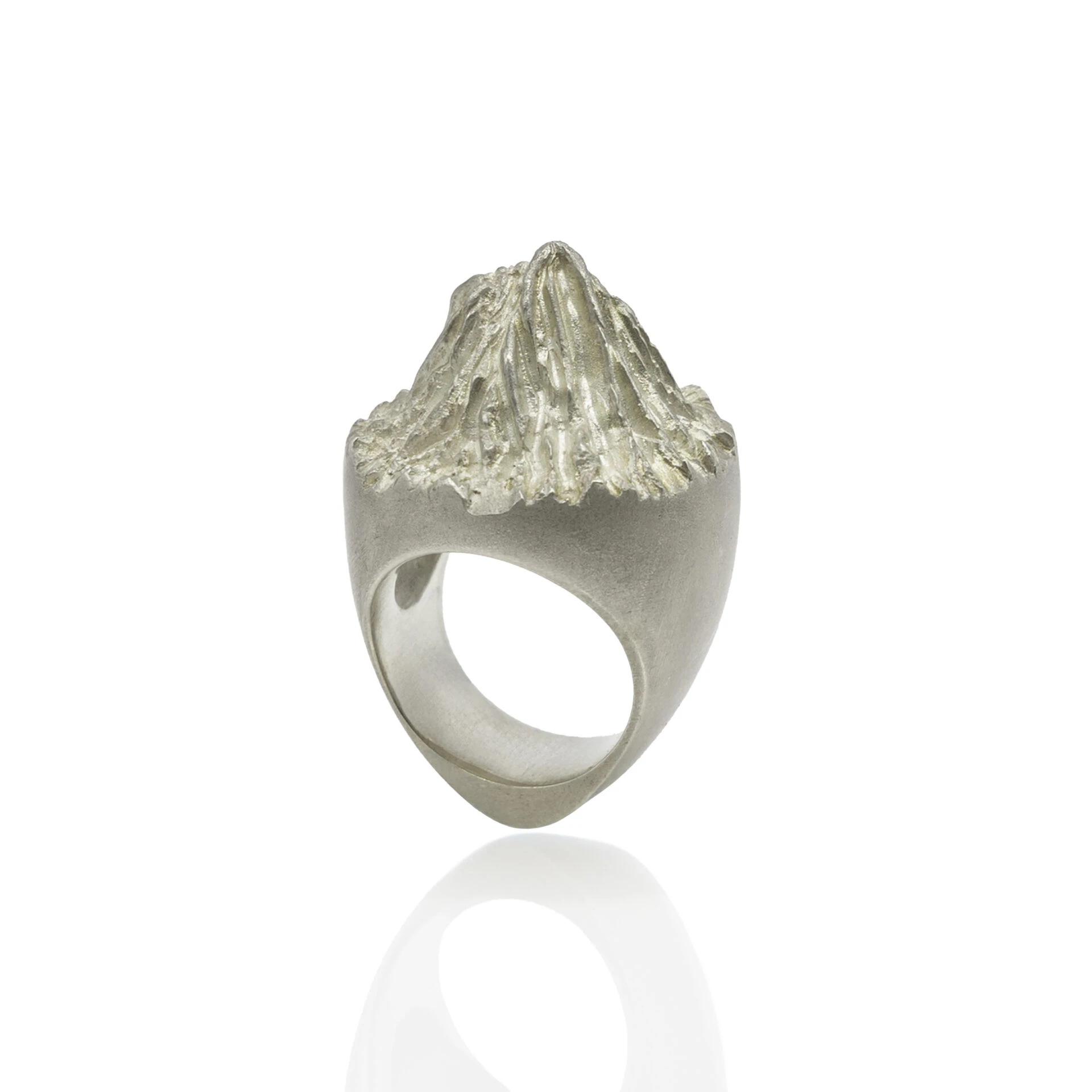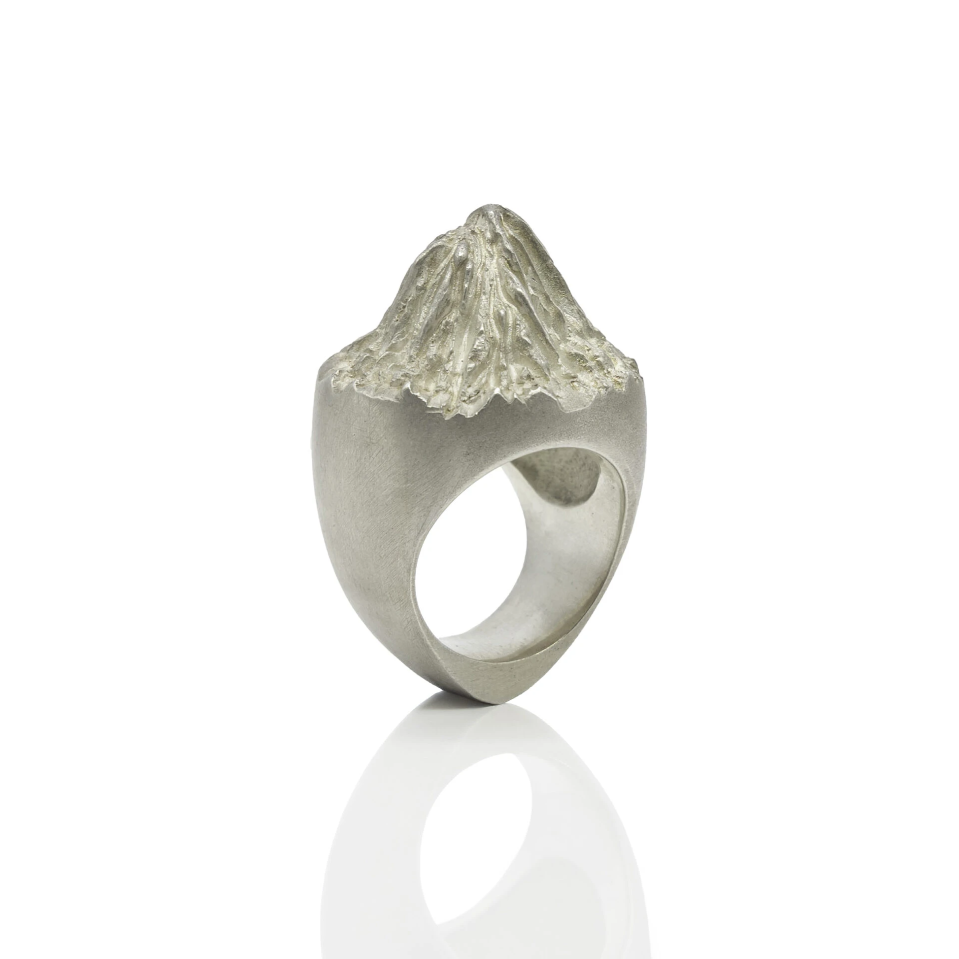 Sculptural ring inspired by the explosive force of volcanoes and the formation of new and fertile land post-eruption